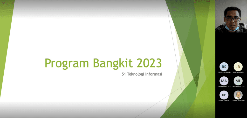 Pada hari Jumat, 18 November 2022, telah dilaksanakan kegiatan Sosialisasi Program Bangkit 2023 untuk mahasiswa Program Studi S1 Teknologi Informasi.